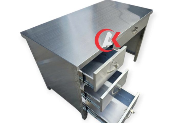 Cấu trúc:Mặt bàn phẳng hoặc có lớp đục lỗ (perforated) để lưu thông không khí.Chân bàn chắc chắn, có thể gắn bánh xe di chuyển hoặc tăng chỉnh độ cao.Các góc cạnh được bo tròn để đảm bảo an toàn và dễ vệ sinh.