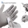 Bao tay bảo hộ chống cắt chất liệu HPPE cấp độ 5 có bề ngoài mịn và mềm, rất thoải mái khi đeo và không bị xơ. Găng tay có thể được sử dụng trong chế biến thực phẩm cũng như trong sản xuất công nghiệp, sản xuất.