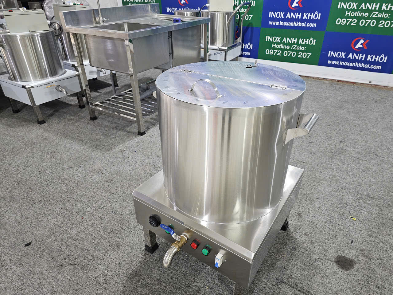 Dung tích lớn: Với dung tích 60 lít, nồi có thể nấu một lượng lớn nước dùng, đủ để phục vụ cho nhiều khách hàng cùng một lúc.