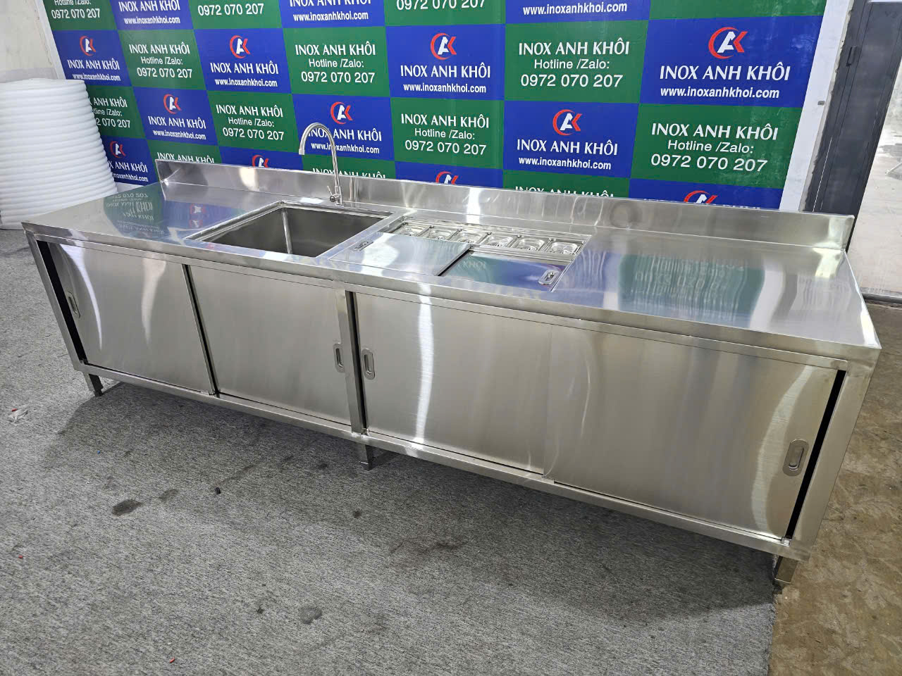 Nếu bạn đang tìm kiếm một quầy inox chất lượng cao với đầy đủ tính năng, quầy inox dài 2m80 có chậu rửa, thùng đá và khay topping chắc chắn sẽ là một lựa chọn tối ưu cho không gian làm việc chuyên nghiệp và sạch sẽ.