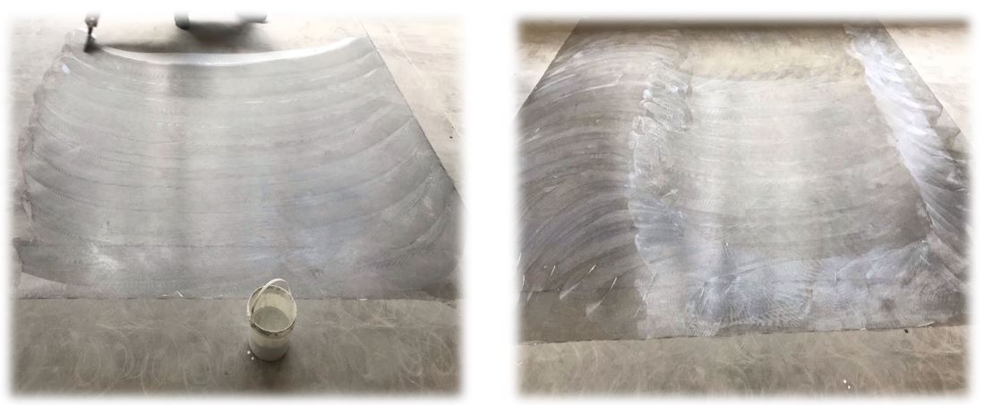 Bước 2: Sau khi đánh bóng sàn, tiến hành lau sạch sàn. Sau đó, chuẩn bị keo dán dẫn điện chuyên dụng và dụng cụ cạo tiêu chuẩn.